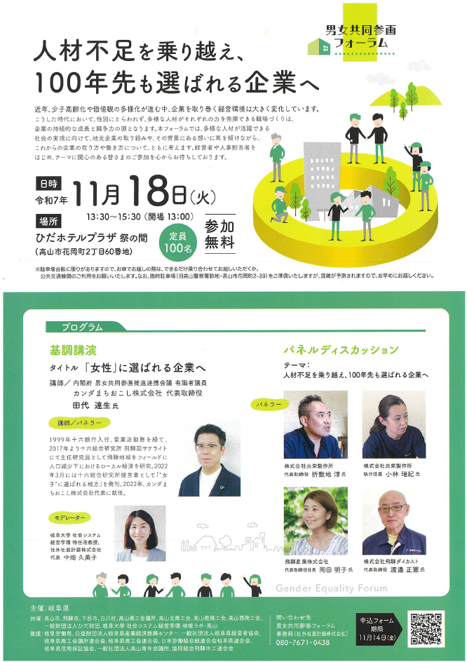 岐阜県よりお知らせです。 近年、少子高齢化や価値観の多様化が進む中、企業を取り巻く経営環境は大きく変化しています。 本フォー…