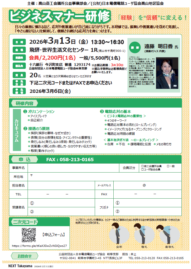 お知らせです。 日々の業務になれるほど、応対や言葉遣いが自己流になりがちです。 本研修では、振舞いや言葉遣いを改めて見直し、…