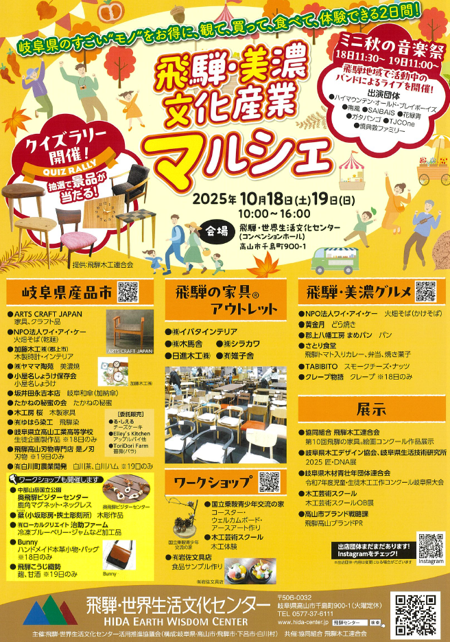 飛騨・世界生活文化センター活用推進協議会よりお知らせです。 〘飛騨・美濃文化産業マルシェ〙 ~岐阜県のすごい”もの”をお得に…