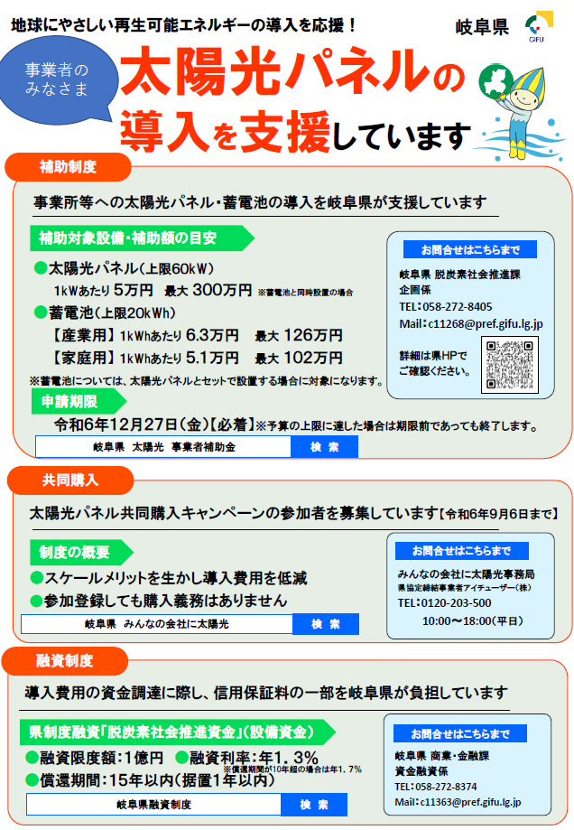 (「岐阜県 太陽光 事業者補助金」で検索)